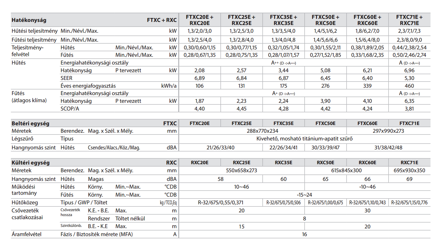 Felszerelés és beüzemelés díja bruttó 55.000 Ft, mely tartalmazza a kiszállást, a készülék helyszínre szállítását, a kültéri és beltéri egység felszerelését, elektromos betáp kiépítését aljzatba max. 5 méterig*, a kültéri tartókonzolt, rögzítő elemeket, a vákuumozást, a berendezés beüzemelését és azzal kapcsolatos dokumentumok kitöltését (pl.: beüzemelési jegyzőkönyv, garanciajegy...), valamint a takarítást.