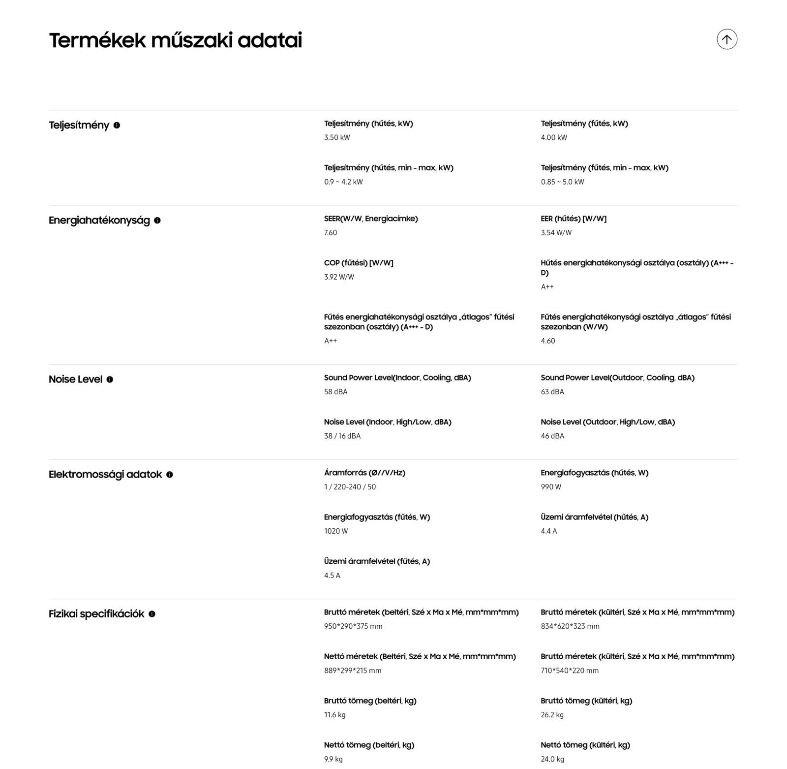 • Hűtő teljesítmény : 2,5 kW
