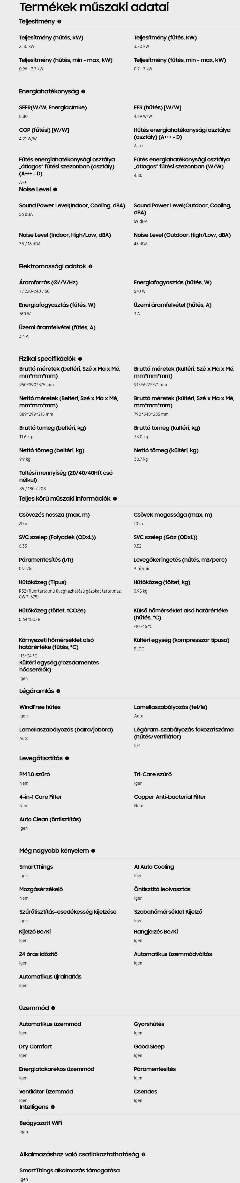 • Hűtő teljesítmény : 2,5 kW
